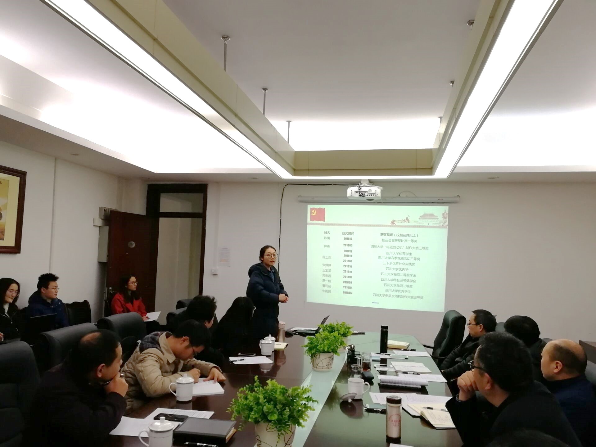 十名支部书记会议述职结束后,学院党委书记庞国伟进行总体点评和总结。他说到,本次现场述职各党支部准备充分,各党支部一年来认真贯彻落实四川大学决策部署和学院党委的重要决定,严格执行“三会一课”制度,党内政治生活执行好。在谈到特色和问题的时候,各党支部都能结合支部工作,对标党的最新要求,提出了切实可行的改进措施,总体上很好。随后,庞书记结合述职中发现的问题,对进一步加强和改进党支部建设、发挥好党支部战斗堡垒作用作了强调。