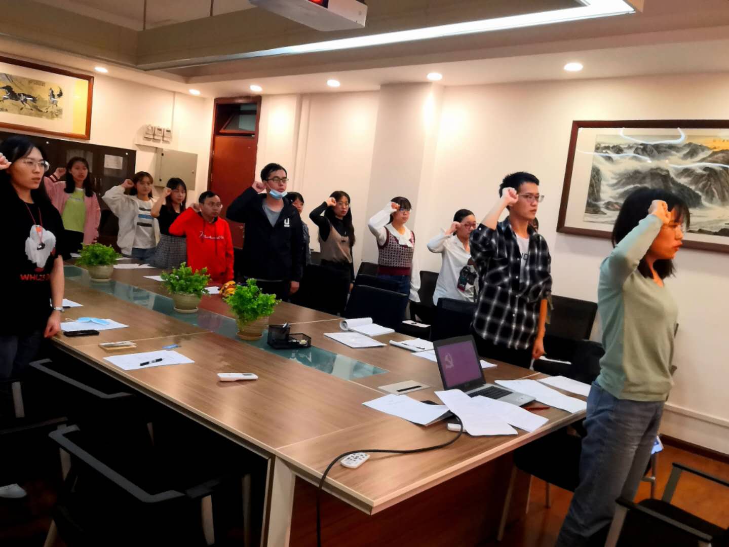 会议尾声,党支部全体成员在鲜艳的党旗下庄严宣誓:我志愿加入中国共产党,拥护党的纲领,遵守党的章程,履行党员义务,执行党的决定,严守党的纪律,保守党的秘密,对党忠诚,积极工作,为共产主义奋斗终身,随时准备为党和人民牺牲一切,永不叛党。