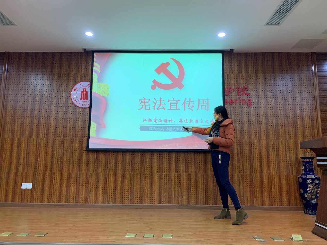 2020年12月4日19点,威廉williamhill体育膜科学与功能材料研究生党支部在正行楼313会议室召开了“弘扬宪法精神,厚植爱国主义情怀”宪法宣传周专题微党课。本次会议由党支部书记田小玉同志主持。支委会黄庆同志负责讲解本次专题微党课内容。
