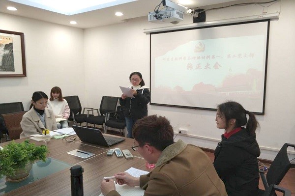 为吸纳优秀人才以不断壮大党员队伍,2018年12月6日晚19:00,化学公程学院研究生膜科学与功能材料第一党支部在化工楼227会议室隆重举行了2018年秋季预备党员转正大会,对谭昕玥、蒲兴群两位同志的转正问题进行了讨论。会议由党支部书记徐敏航主持,第一党支部全体党员参加了此次会议。