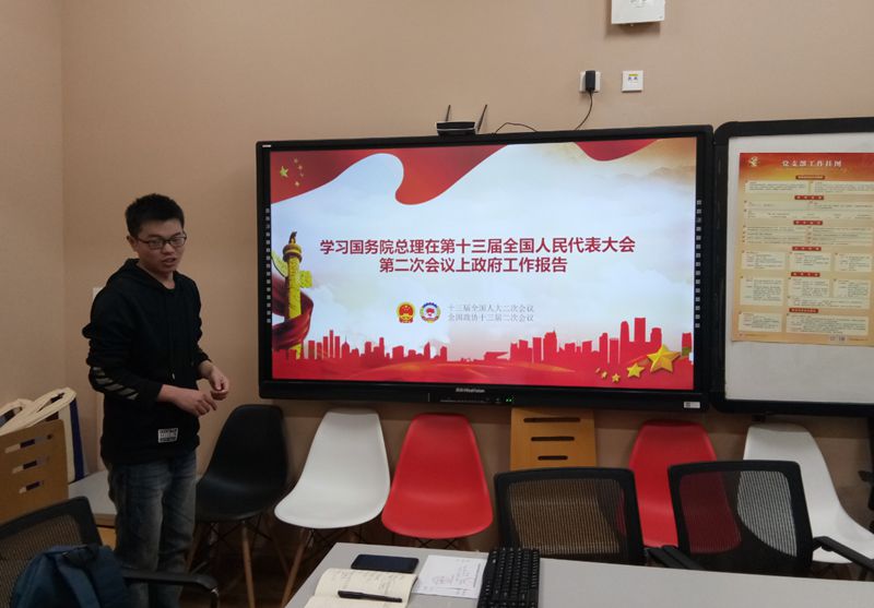 会议后半部分,组织委员刘朋同志带领全体与会党员同志学习了十三届人民代表大会的政府工作报告。喻可乐书记要求全体党员积极关注国家的方针政策,了解党中央和政府的动态,做一名关心时事,与时俱进的优秀共产党员。会上,汪洋、窦敏峰、瞿淼、唐勇、郭永正等党员同志踊跃发言,全体党员针对政府工作报告,结合自己的学习调研体会积极展开了讨论,表达了对国家时事的关心和积极学习的决心。