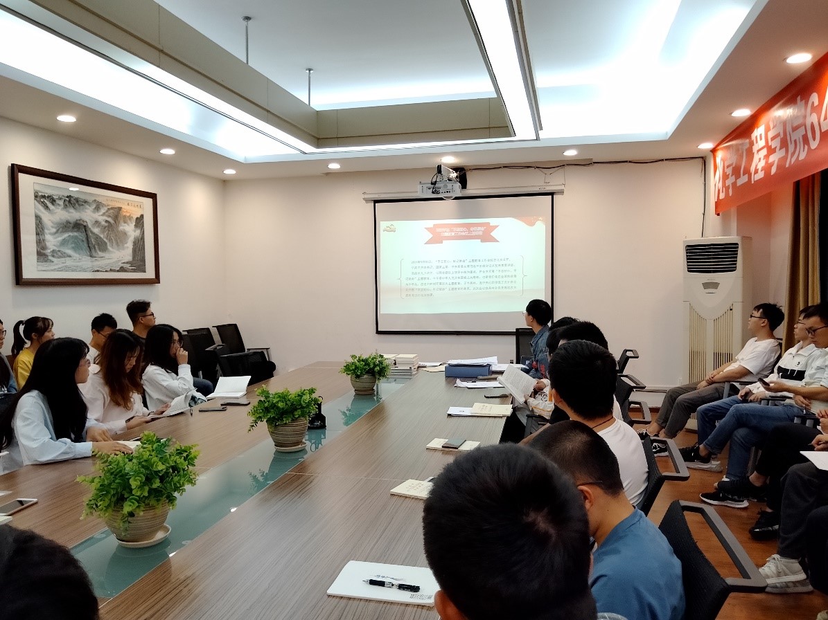 2019年9月26日傍晚6点30分,四川大学化工学院研究生第一党支部在化工学院227会议室召开了“不忘初心、牢记使命”主题教育学习会。此次会议共有38位同志参加,其中正式党员22名,预备党员5名,积极分子11名。本次会议由党支部副书记王勇同志主持召开。