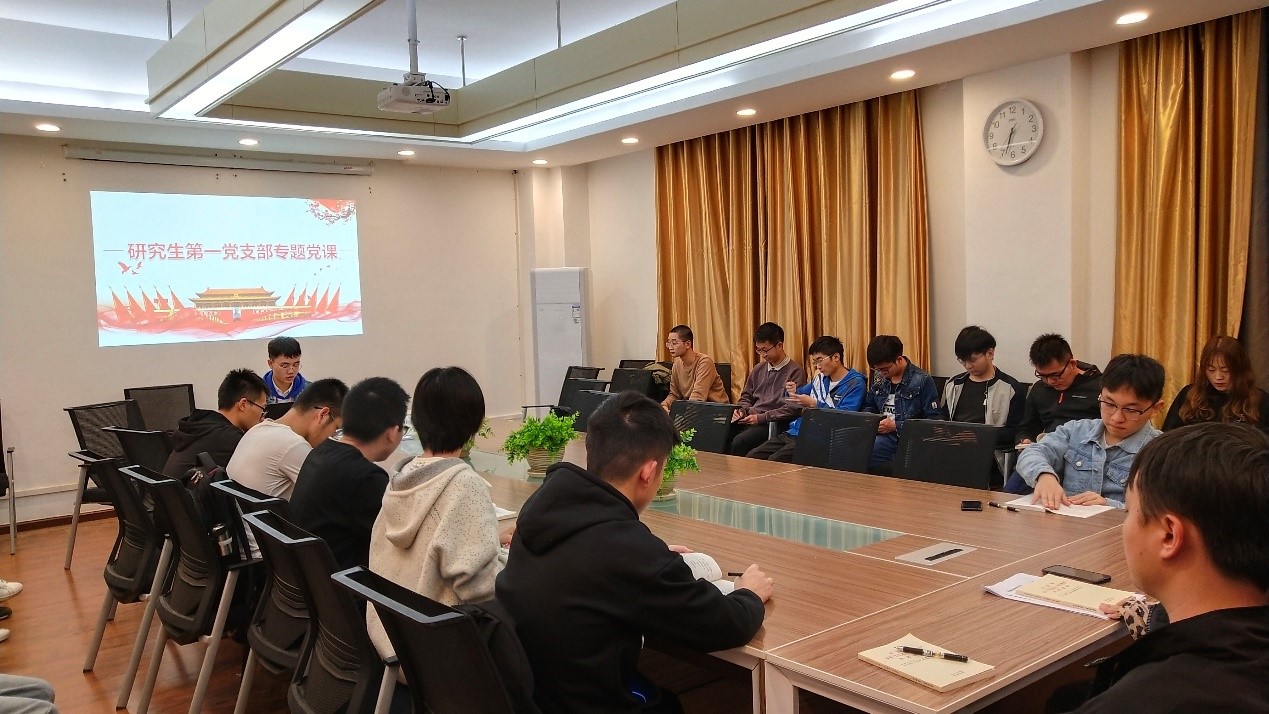 2019年10月22日傍晚6点30分,四川大学化工学院研究生第一党支部在化工学院227会议室召开了“谈学生党员的初心和使命”专题党课。此次会议共有36位同志参加,其中正式党员20名,预备党员5名,积极分子11名。本次专题党课由党支部副书记王勇同志主持召开。